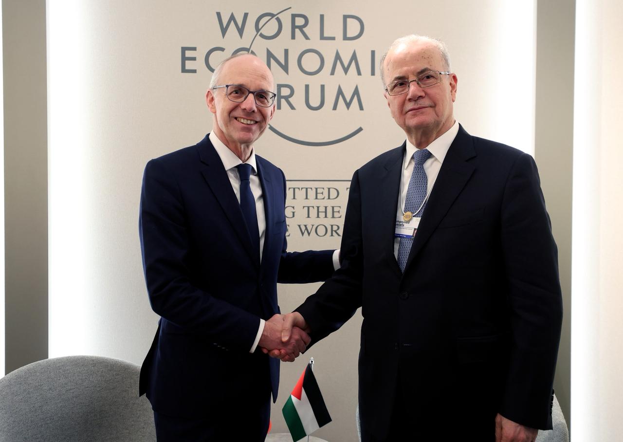 During the meeting, held on the sidelines of the World Economic Forum in Davos and attended by Palestine’s ambassador to Switzerland and the United Nations in Geneva, Ibrahim Khraishi, Mustafa also discussed intensifying cooperation to provide essential services in Palestine. These include humanitarian and medical supplies and other vital services amid the severe humanitarian conditions in the Gaza Strip.